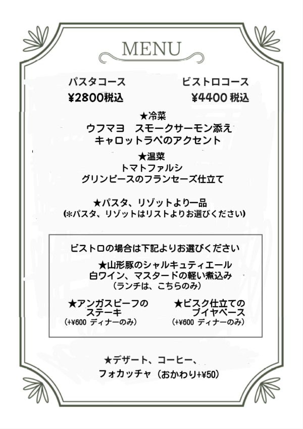 ランチ、ディナーとも共通メニューです。